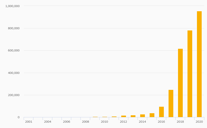 Secure Internet Servers rose 22.0% to 954,351 in Poland in 2020