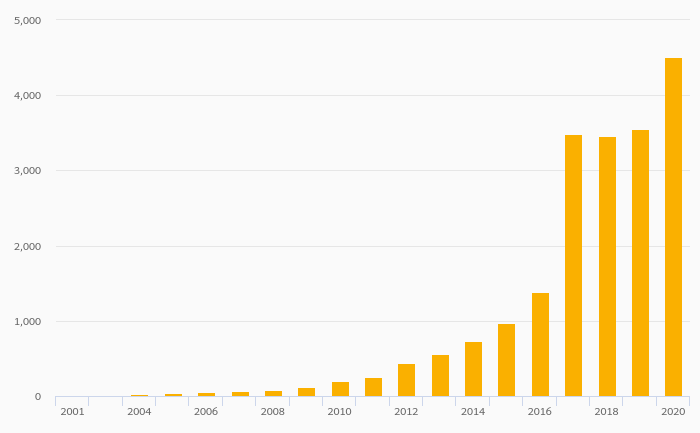 Secure Internet Servers rose 27.0% to 4,503 in Egypt in 2020