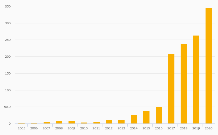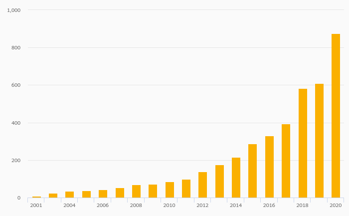 Secure Internet Servers rose 30.3% to 1,338,370 in China in 2020