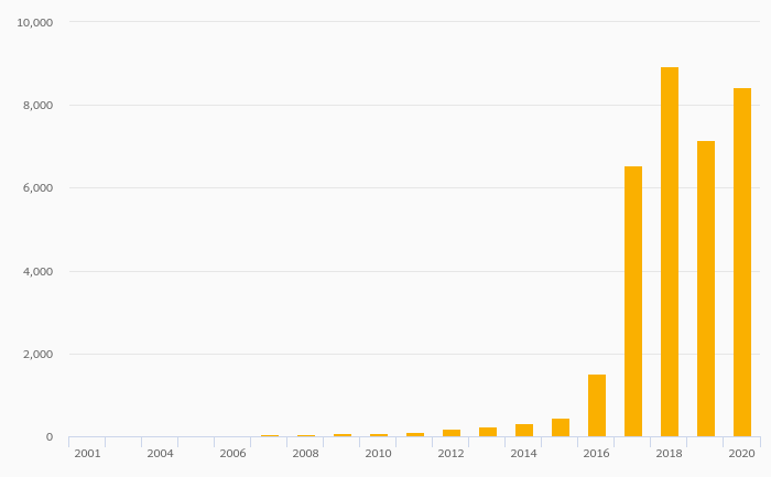 Secure Internet Servers rose 25.7% to 570,108 in Turkey in 2020