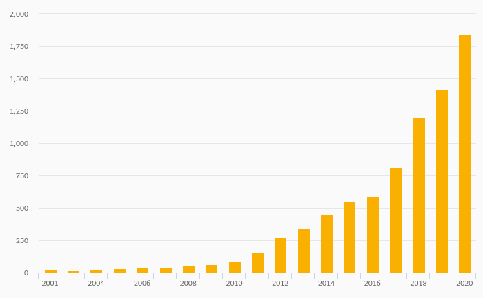 Secure Internet Servers rose 9.53% to 2,000 in Liechtenstein in 2020