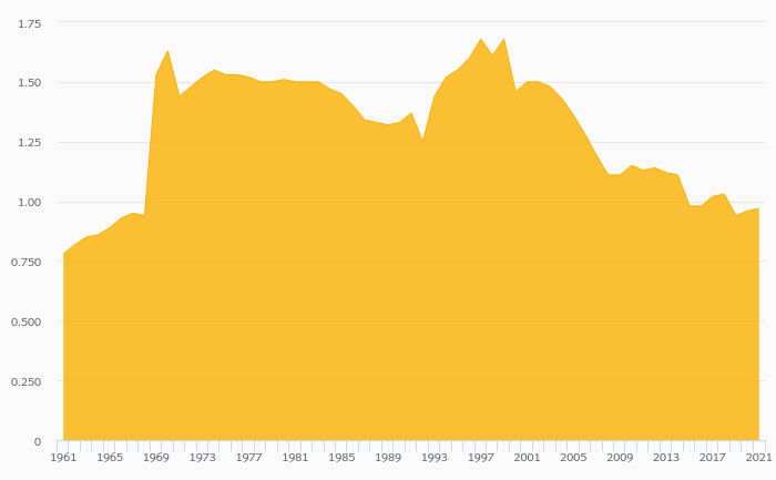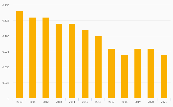 Coffee Consumption Per Capita fell 3.92% to 1.47 kg in the World in 2021