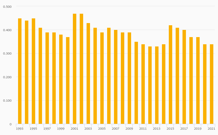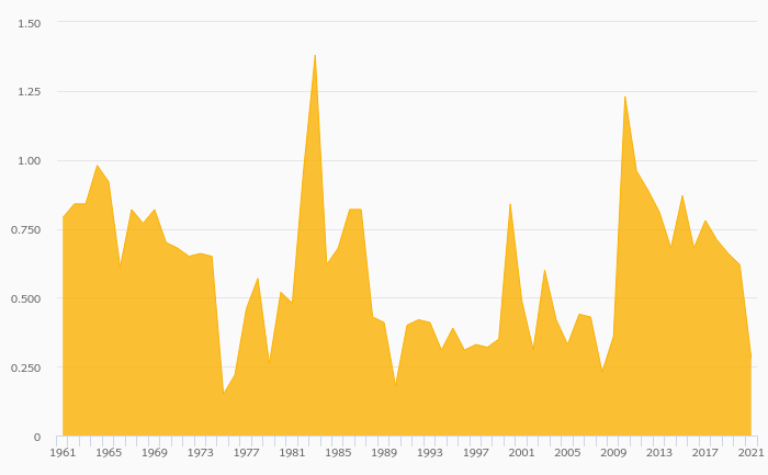 Coffee Consumption Per Capita fell 54.8% to 0.280 kg in Gabon in 2021