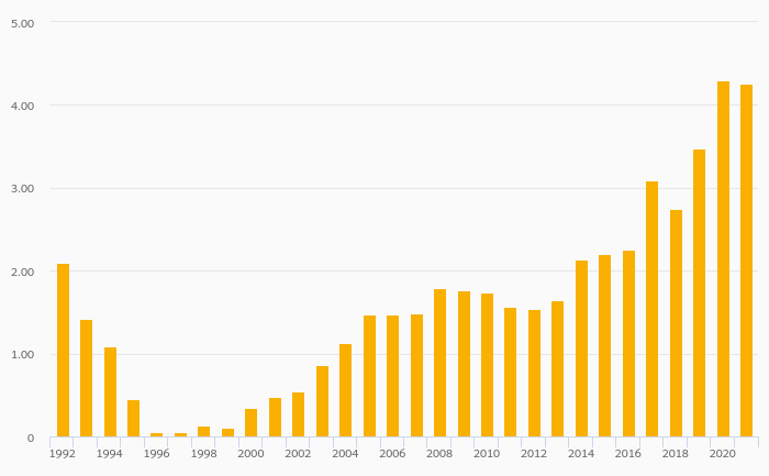 Coffee Consumption Per Capita rose 32.5% to 3.59 kg in Tunisia in 2021