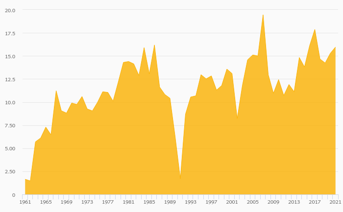 Egg Consumption Per Capita rose 4.45% to 16.0 kg in Kuwait in 2021