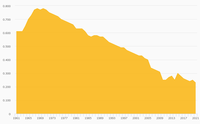 Egg Consumption Per Capita fell 8.00% to 0.230 kg in Niger in 2021