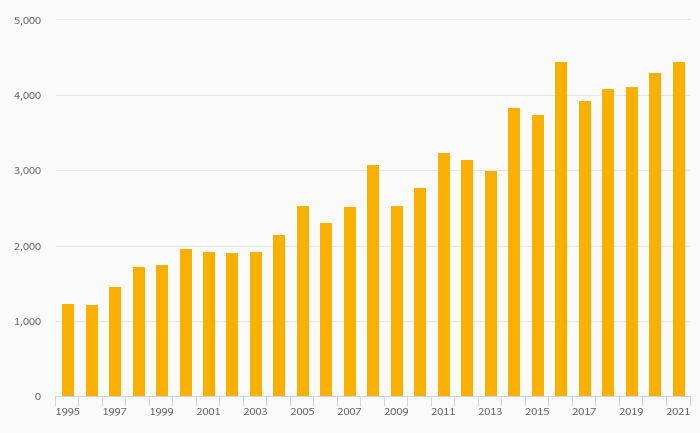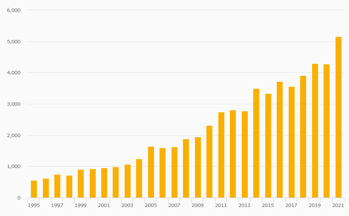 Households' Financial Investments (Local Currency) rose 20.7% to DKK 5,159 bil in Denmark in 2021