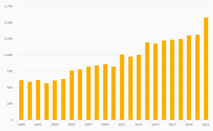 Households' Financial Investments (Local Currency) rose 20.3% to CHF 1,578 bil in Switzerland in 2021
