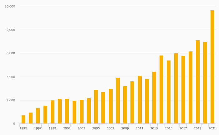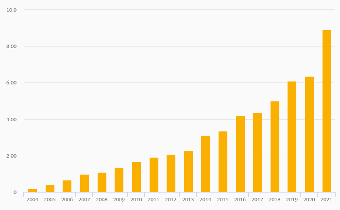 Households' Financial Investments (Local Currency) rose 38.8% to SEK 9,688 bil in Sweden in 2021
