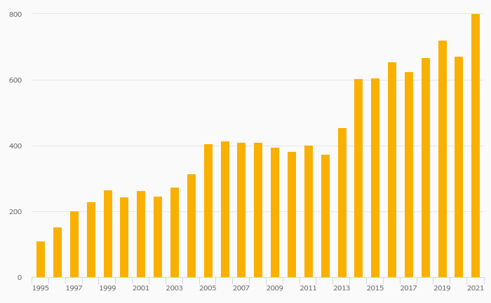 Households' Financial Investments (Local Currency) rose 18.9% to EUR 799 bil in Spain in 2021