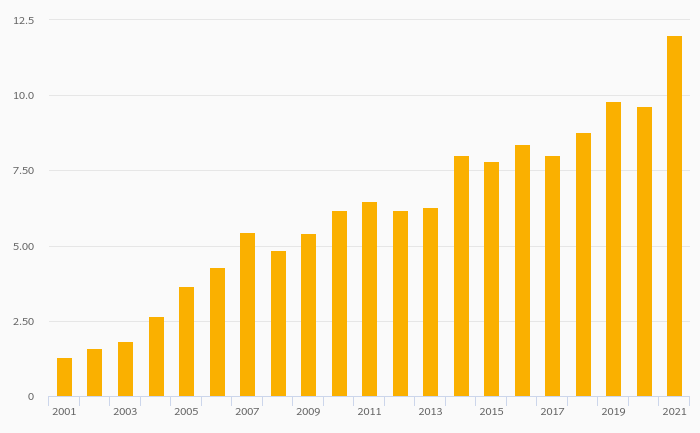 Households' Financial Investments (Local Currency) rose 24.2% to EUR 12.0 bil in Slovenia in 2021
