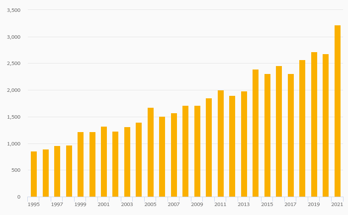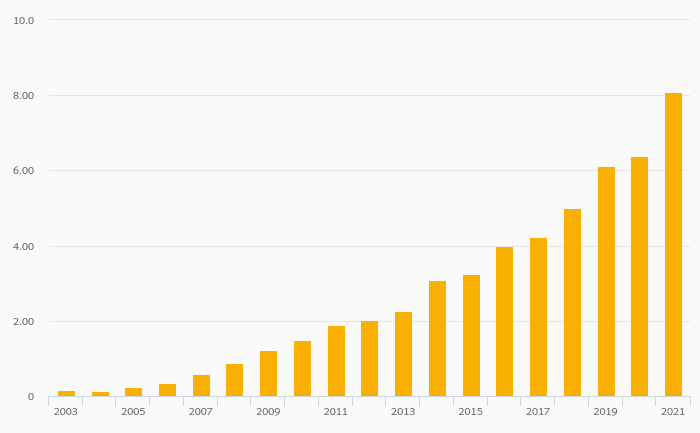 Households' Financial Investments (Local Currency) rose 20.3% to EUR 3,221 bil in Germany in 2021