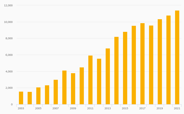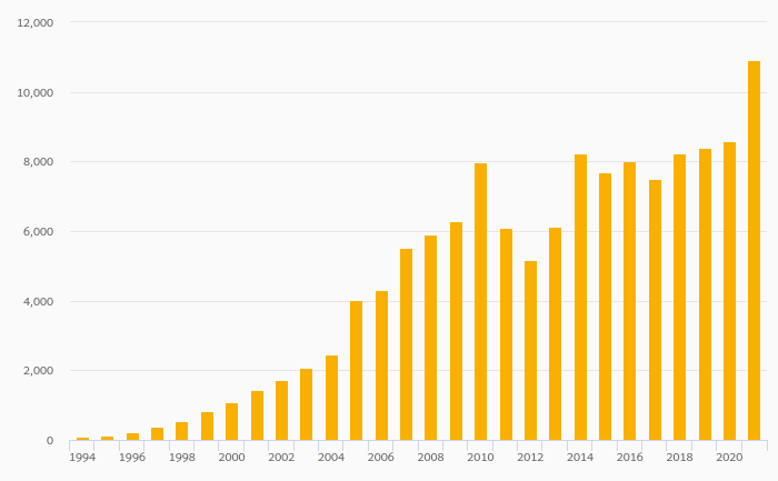 Households' Financial Investments (Local Currency) rose 27.4% to HUF 10,928 bil in Hungary in 2021