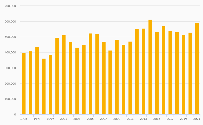 Households' Financial Investments (Local Currency) rose 11.8% to JPY 590,808 bil in Japan in 2021