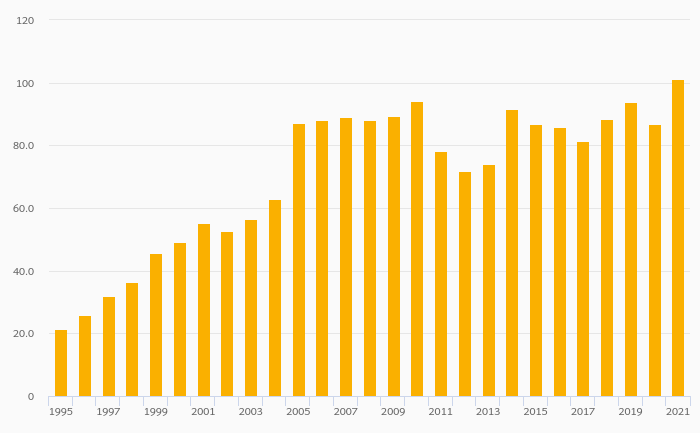 Households' Financial Investments (Local Currency) rose 28.5% to EUR 122 bil in Finland in 2021