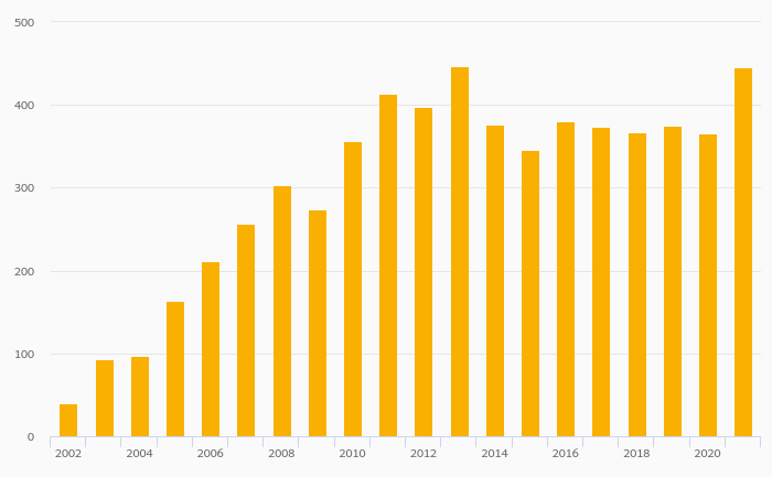 Households' Financial Investments (Local Currency) rose 21.9% to PLN 446 bil in Poland in 2021