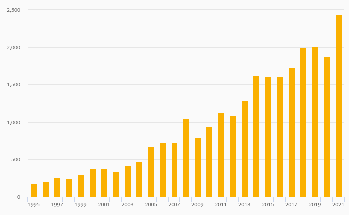Households' Financial Investments (Local Currency) rose 30.3% to NOK 2,440 bil in Norway in 2021