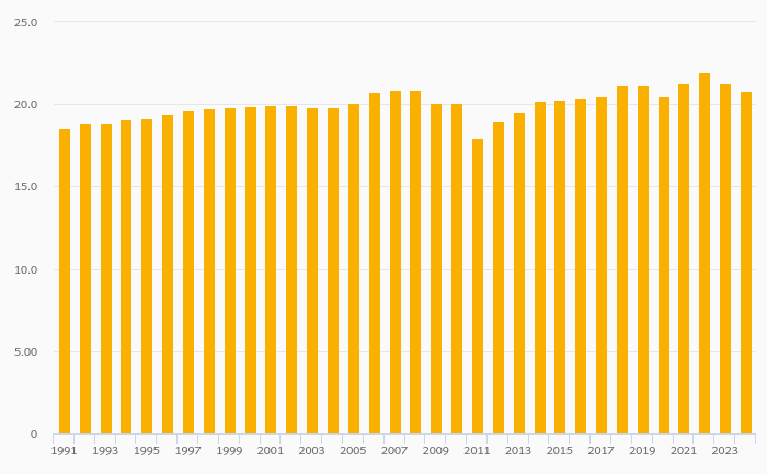 Employment to Population Ratio (15+ Years Old, Female) fell 2.26% to 20.8% in Tunisia in 2024