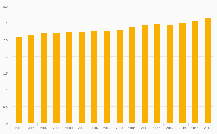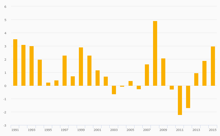 Real Gross Wage Growth rose 58.4% to 2.98% in Luxembourg in 2015