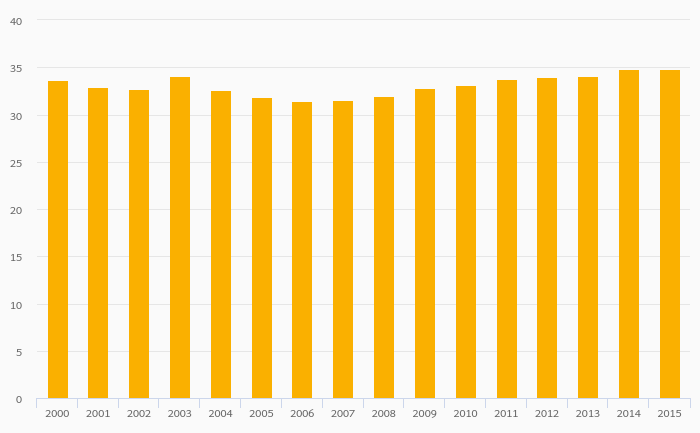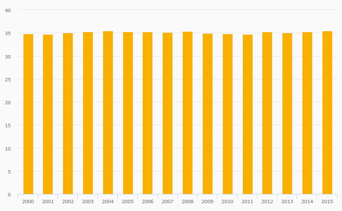 Duration of Working Life (Total) rose 0% to 34.8 years in Lithuania in 2015