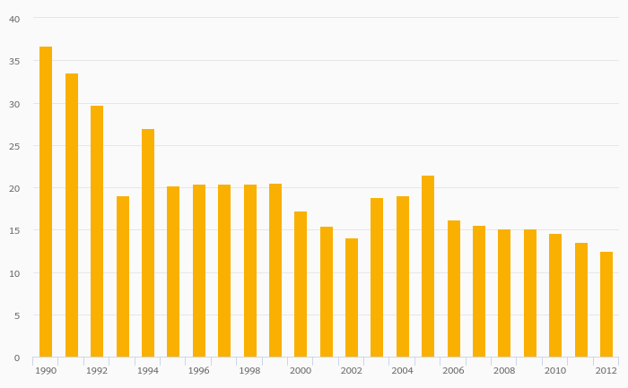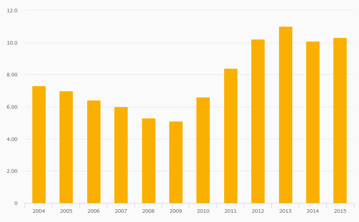 Long-Term Unemployed (As % of Active Population) rose 1.98% to 10.3% in Croatia in 2015