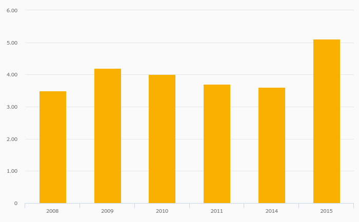 Cultural Employment - From 60 to 64 years ('000 persons) rose 41.7% to 5.10 '000 in Bulgaria in 2015