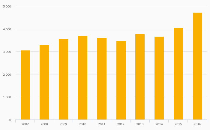 Mean and median income by household type - Three or more adults with dependent children - Mean equivalised net income - Purchasing power standard (PPS) rose 16.5% to 4,716 Purchasing power standard (PPS) in Romania in 2016