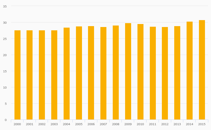 Duration of Working Life (Females) rose 1.32% to 30.7 years in Croatia in 2015