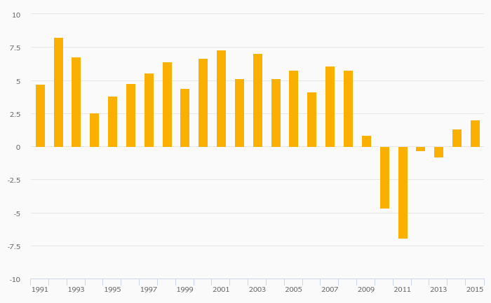 Nominal Gross Wage Growth rose 48.8% to 2.01% in Ireland in 2015
