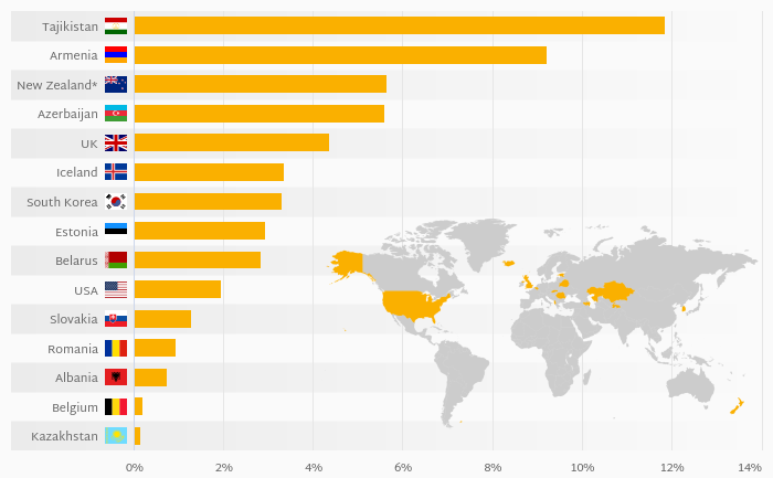 Gender Pay Gap (As % of Median Monthly Earnings) rose 0% to in Canada in 2015
