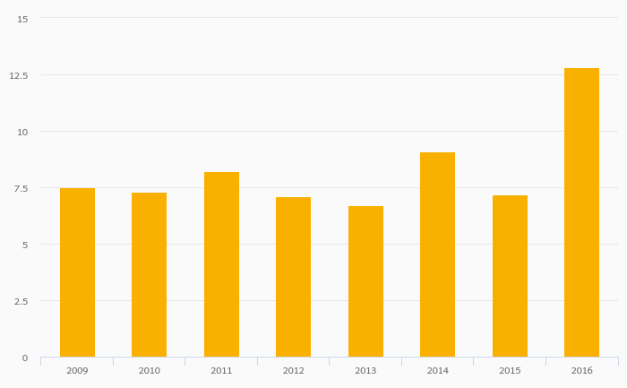 Persons in-work at-risk-of-poverty rate by age and sex - 18 years or over - Males - Employees rose 77.8% to 12.8 in Bulgaria in 2016
