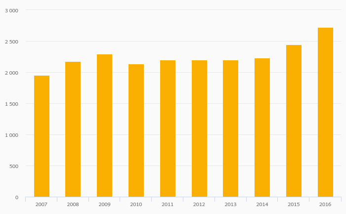 Mean and median income by household type - Two adults with two dependent children - Mean equivalised net income - Euro rose 11.7% to 2,726 Euro in Romania in 2016