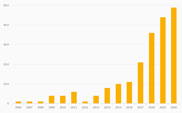 Secure Internet Servers rose 42.6% to 1,923,034 in Russia in 2020