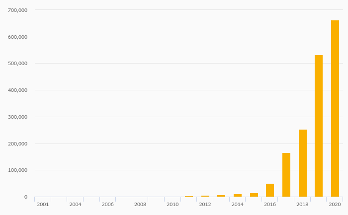 Secure Internet Servers rose 22.6% to 1,022,461 in Spain in 2020