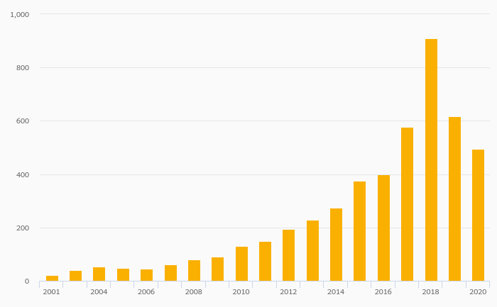 Secure Internet Servers rose 23.0% to 1,741 in Armenia in 2020