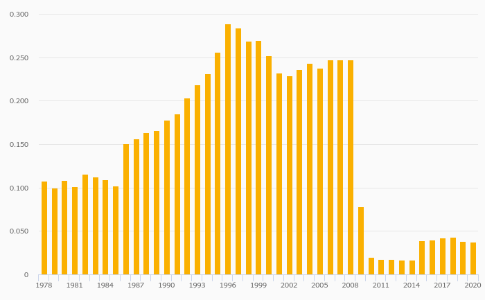 Secure Internet Servers rose 78.2% to 98.0 in Gabon in 2020