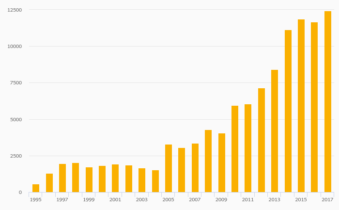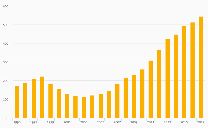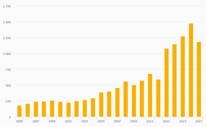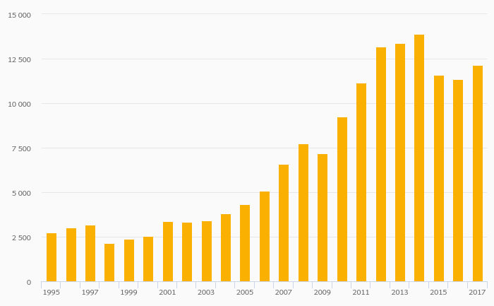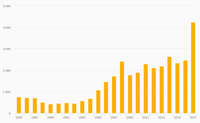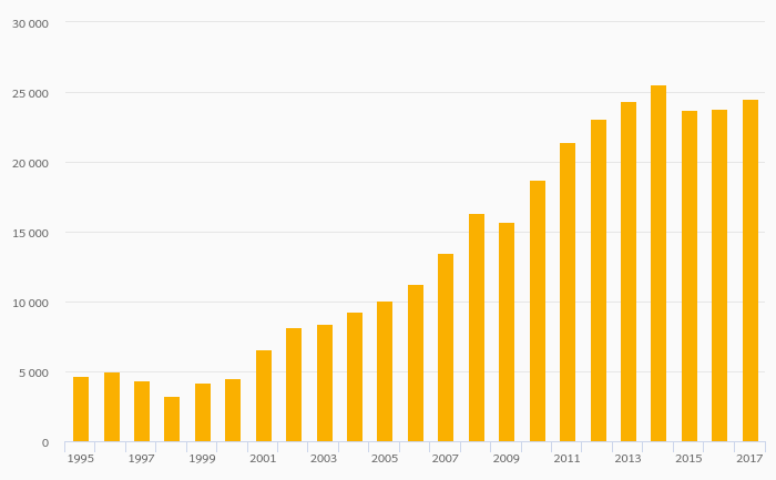 International Tourism, Expenditure (USD) rose 8.64% to USD 17,800 mil in Norway in 2017