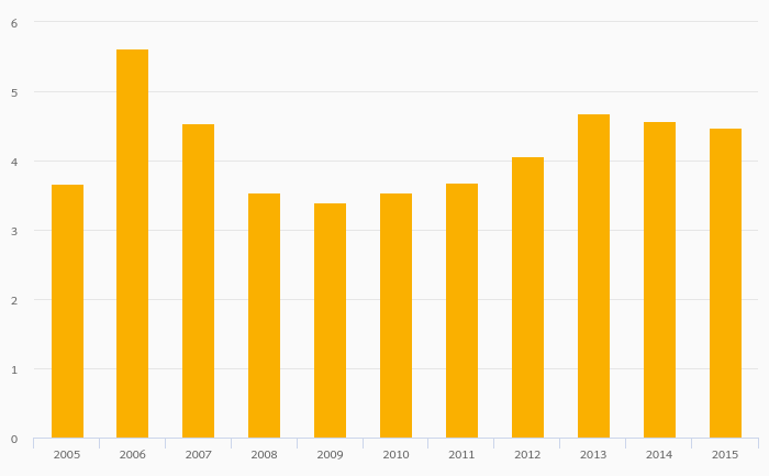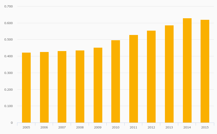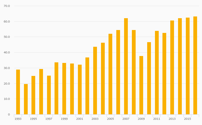 Road Goods Transported (mil tonnes) rose 1.31% to 63.4 Mt in Latvia in 2016