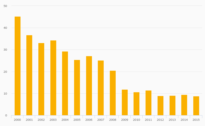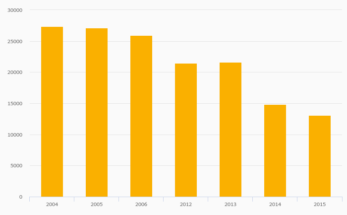 Postal Service (Letter Boxes) fell 12.3% to 13,047 in Norway in 2015