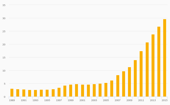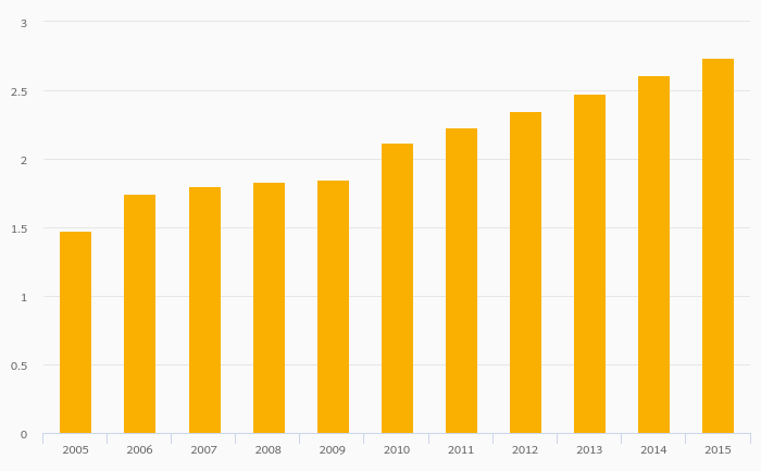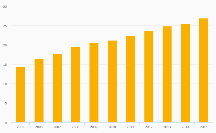 Number of Passenger Cars rose 5.46% to 26.9 mil in Mexico in 2015