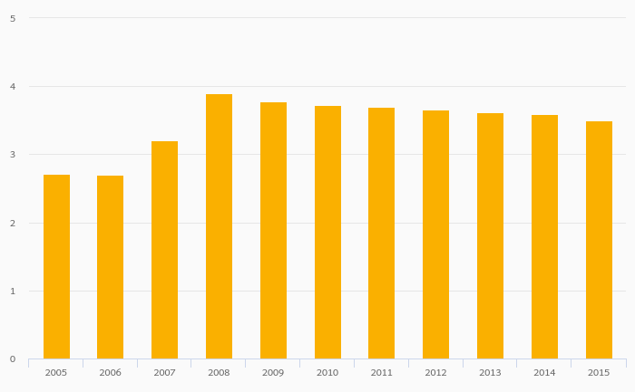 Passenger Cars Per Household rose 0.912% to 1.18 vehicles in Belgium in 2015