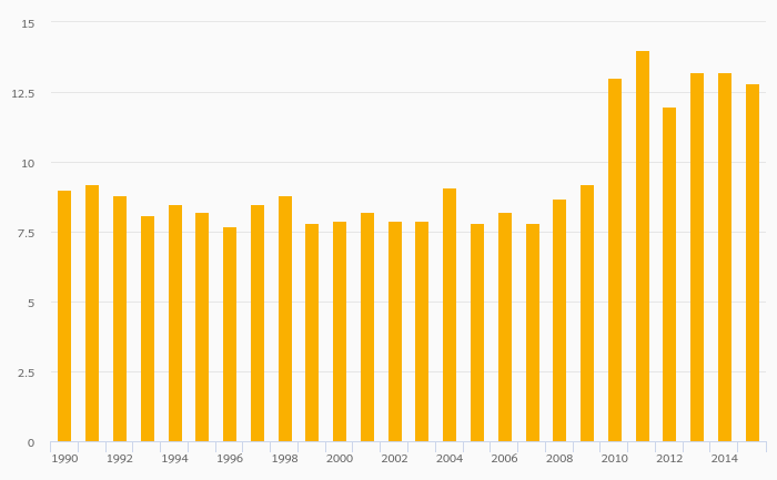 Number of Motor Vehicles rose 6.40% to 1.33 mil in Kyrgyzstan in 2015