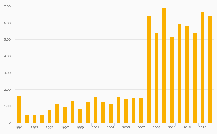 Waterway Goods Transported (mil tonnes) fell 3.51% to 6.41 Mt in Croatia in 2016