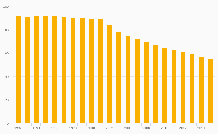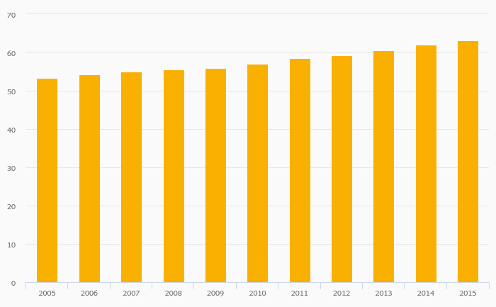 Motor Vehicles Per 1,000 People rose 1.60% to 63.1 vehicles in Zimbabwe in 2015