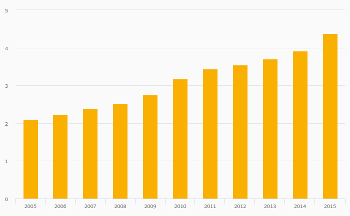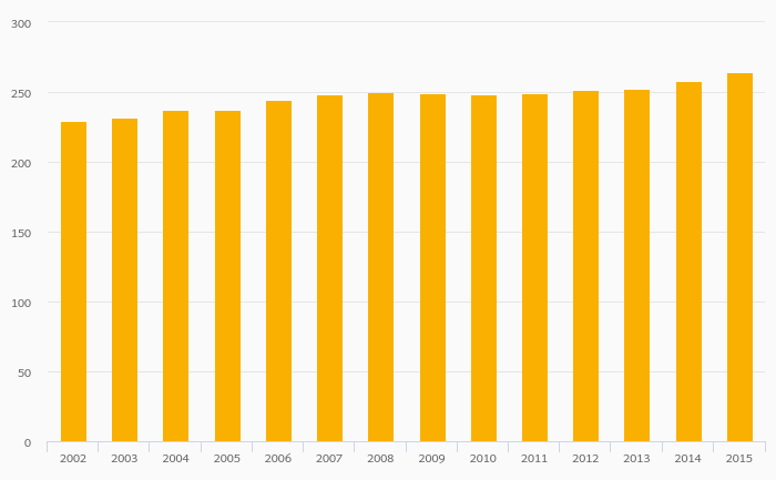 Number of Motor Vehicles rose 2.39% to 264 mil in the USA in 2015