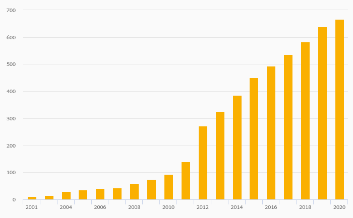 Secure Internet Servers rose 4.55% to 667 in Bahrain in 2020