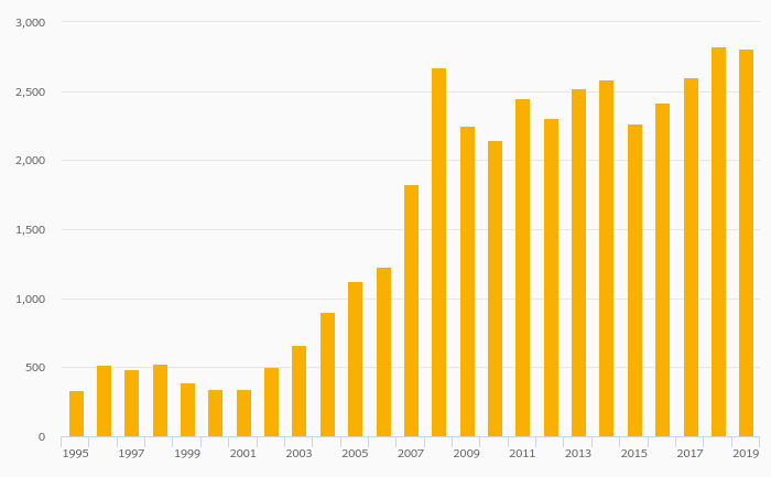 International Tourism, Expenditure (USD) fell 0.425% to USD 2,811 mil in Slovakia in 2019