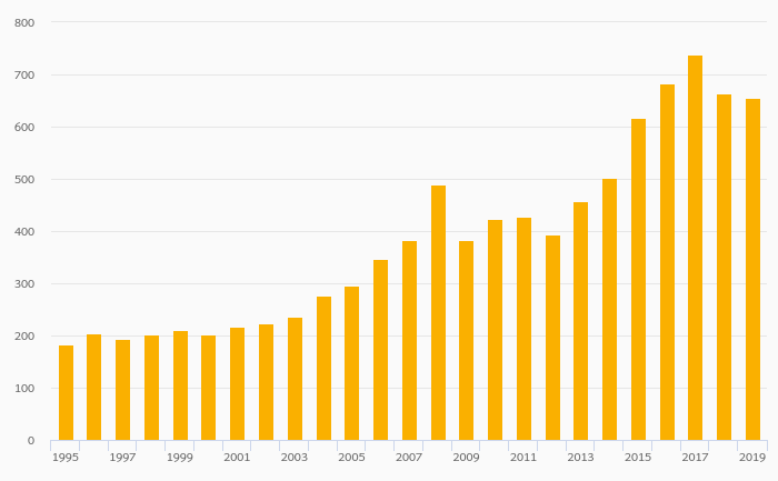 International Tourism, Expenditure (USD) fell 1.06% to USD 656 mil in Mauritius in 2019