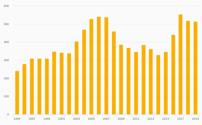 International Tourism, Expenditure (USD) rose 9.36% to USD 479 mil in Moldova in 2019