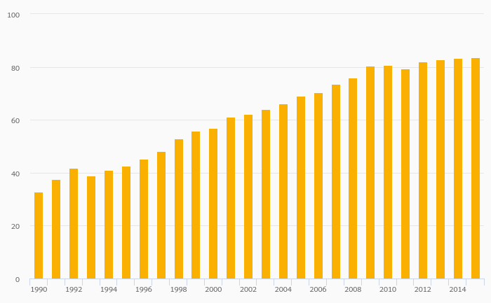 Road Transport In tonne-km (As % of Total Inland Freight Transport) rose 0.480% to 83.7% in Poland in 2015